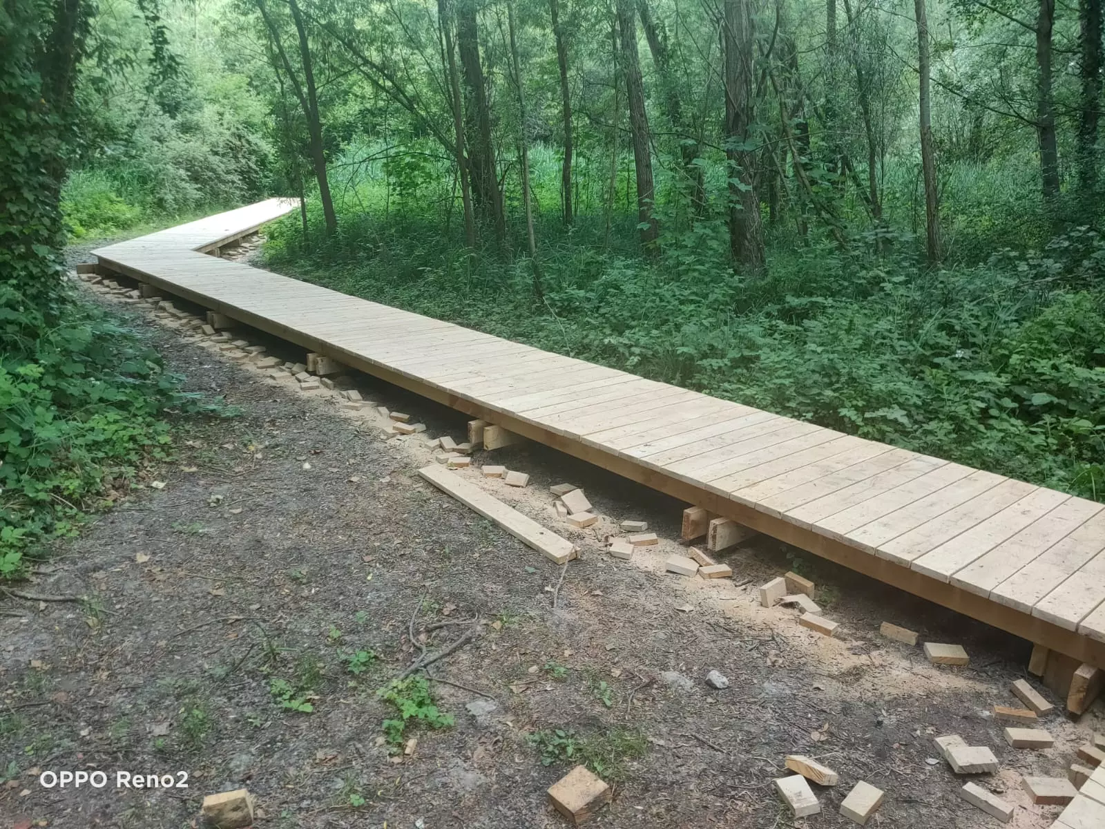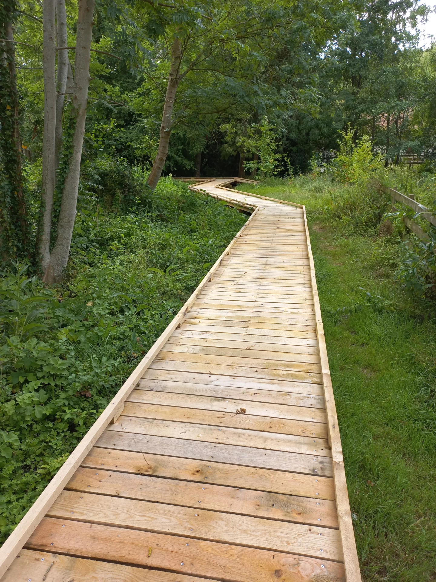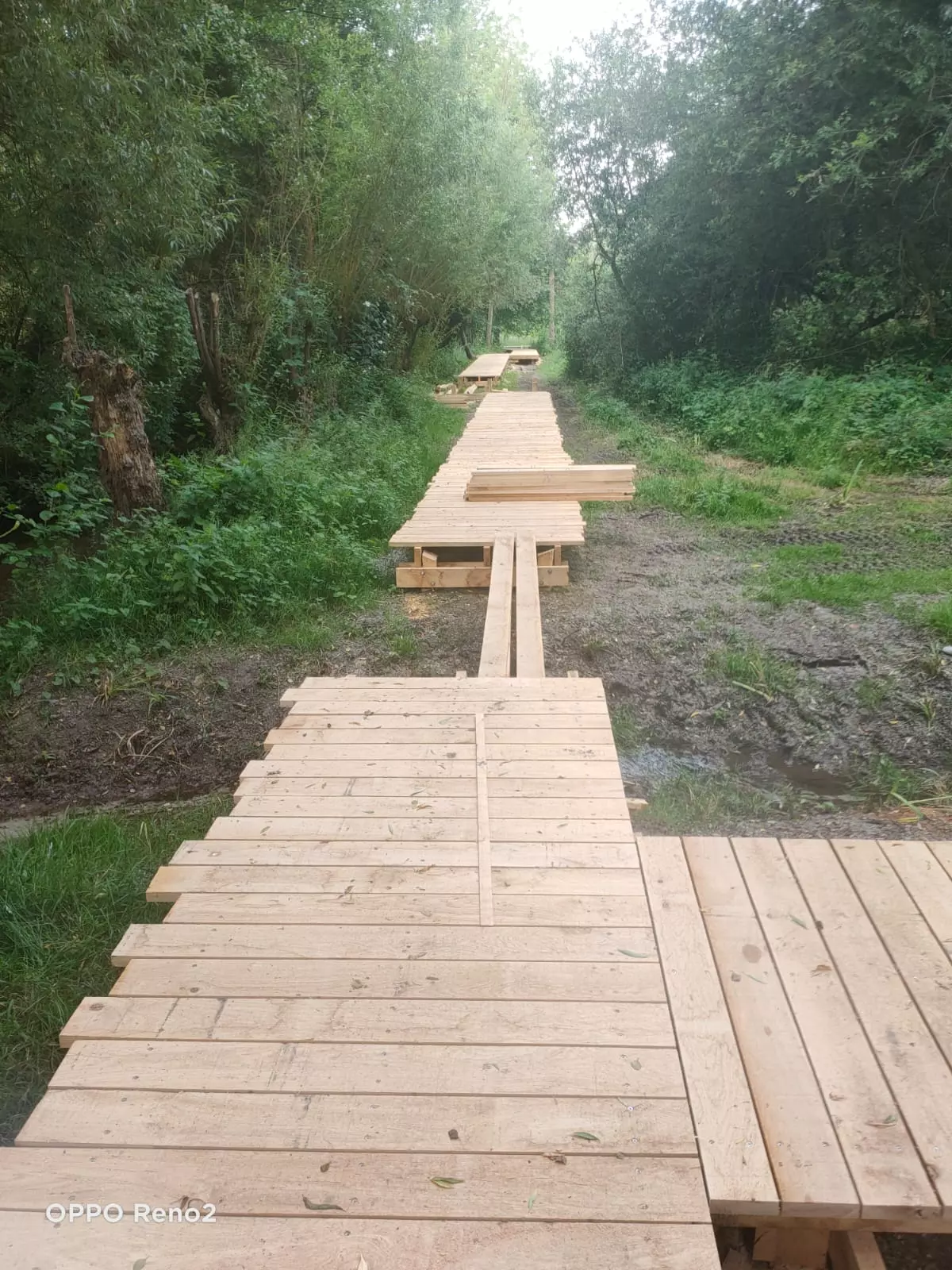 Après sécurisation des accès et démantèlement du platelage existant, le nouveau sentier sur pilotis a été construit avec une largeur de 1,30 m et une hauteur de 30 cm par rapport au sol.