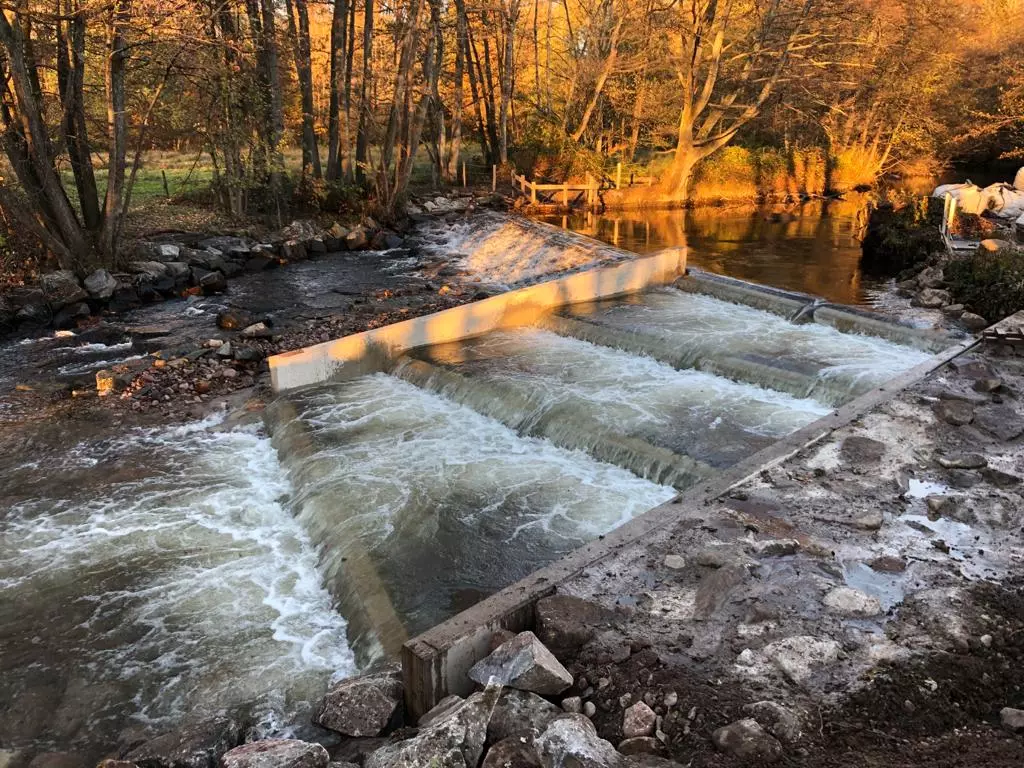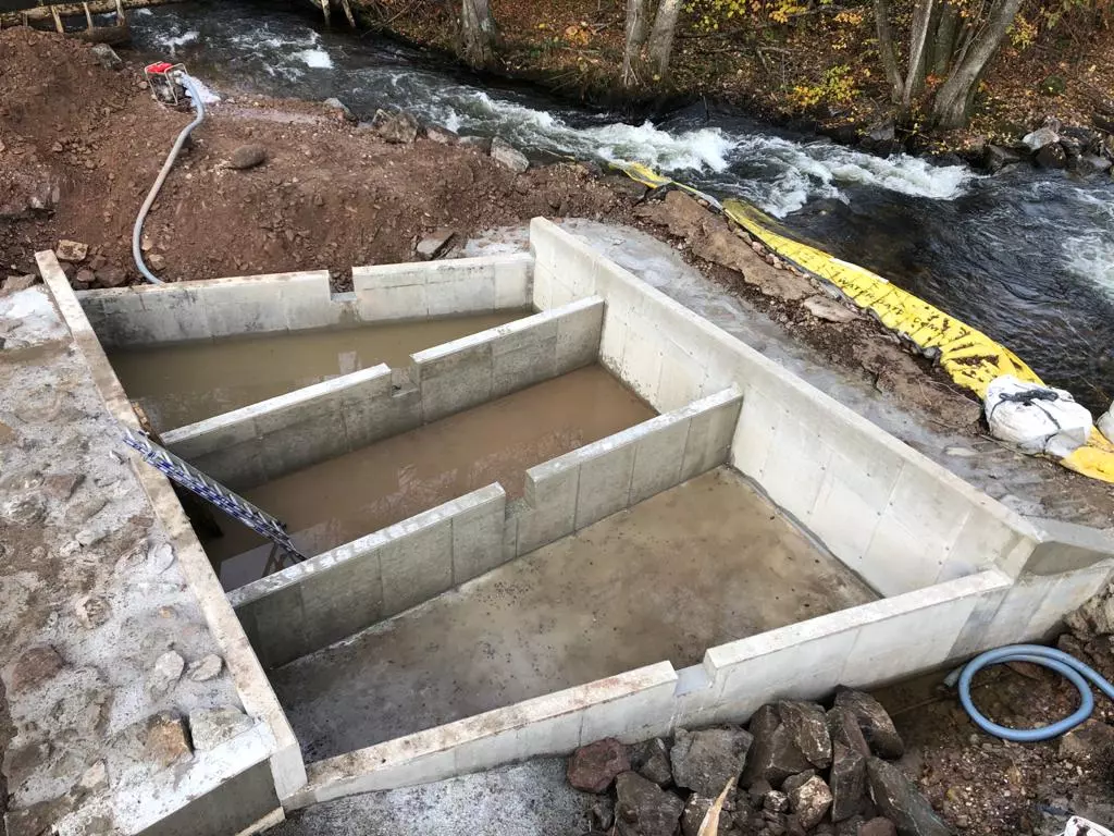 Nous avons ensuite réalisé la passe à poissons dont les bassins ont été remplis avec des matériaux alluvionnaires à une cote définie pour garantir le bon fonctionnement de la passe et assurer la libre circulation piscicole.