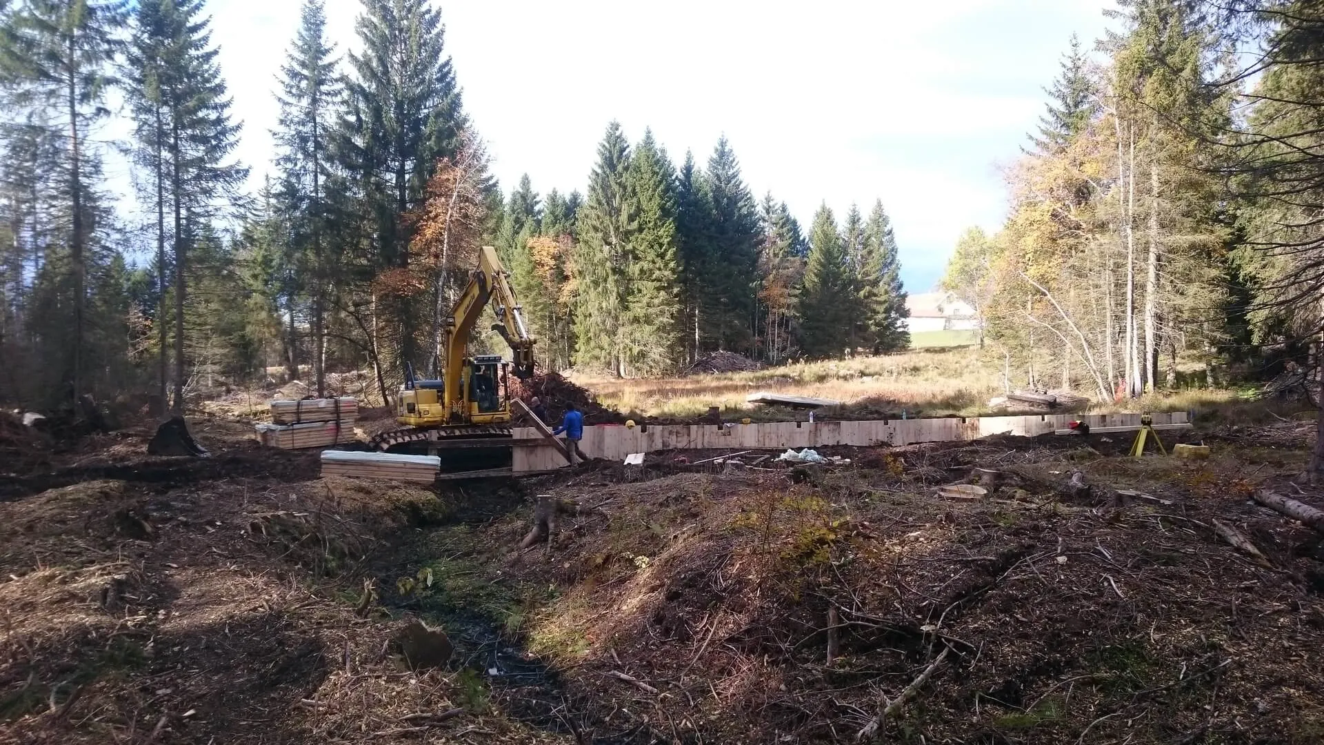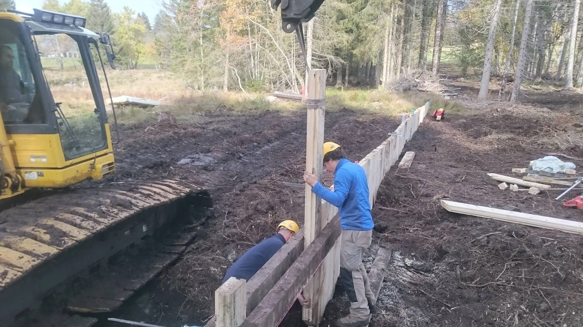 La mise en œuvre des madriers avec renforcement des palissades a assuré l’étanchéité des ouvrages, puis le comblement a été effectué avec de la tourbe prélevée directement sur site pour restaurer le fonctionnement naturel du haut marais.