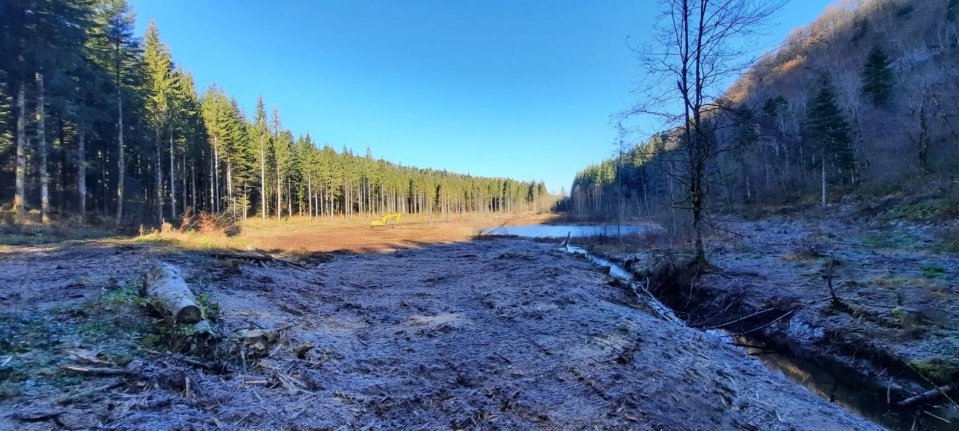 La préparation du site a consisté à broyer 10 000 m² de végétation arborée et arbustive, complété par le rognage des souches et le retrait des embâcles et arbres couchés.
